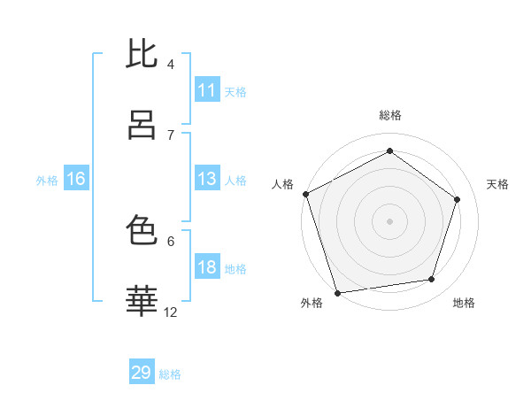 比呂 色華さんの総格は29画の4点!