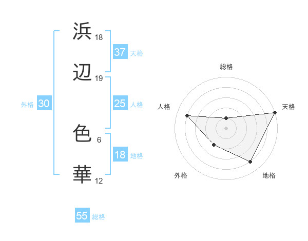 浜辺 色華さんの総格は55画の1点!