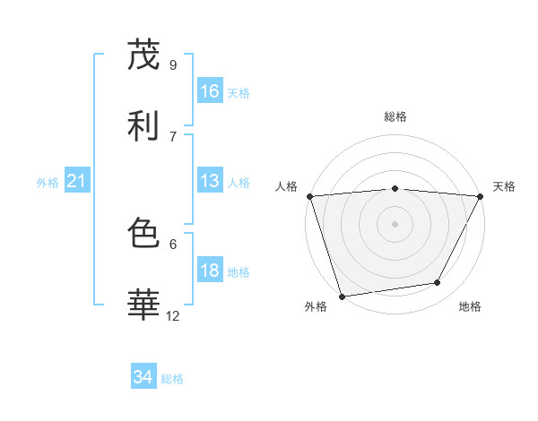 茂利 色華さんの天格は16画の5点!