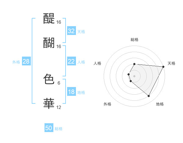 醍醐 色華さんを姓名の画数から五運を鑑定