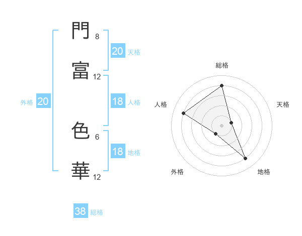 門富 色華さんの総格は38画の4点!