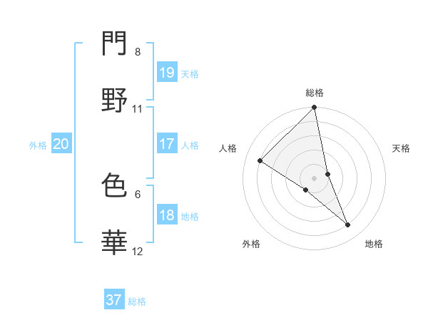 門野 色華さんの総格は37画の5点!