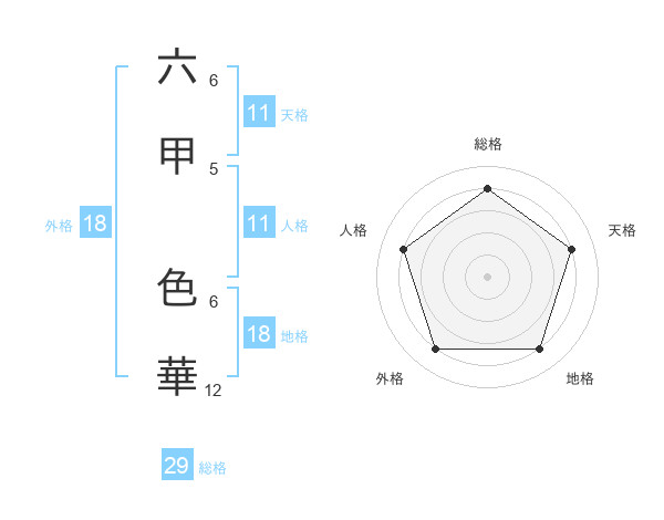 六甲 色華さんの総格は29画の4点