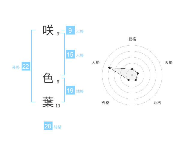 咲 色葉さんの総格は28画の1点!