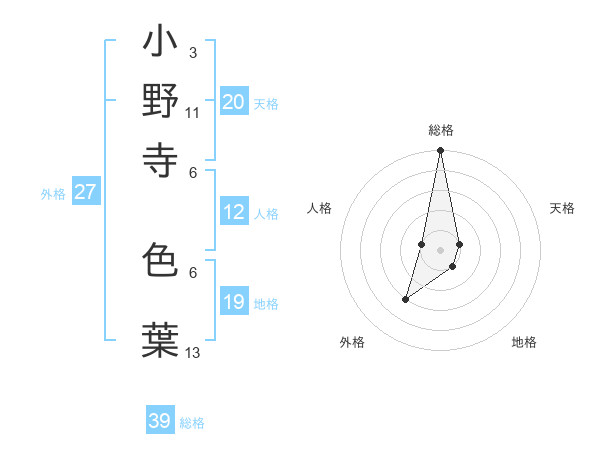 小野寺 色葉さんの総格は39画の5点!