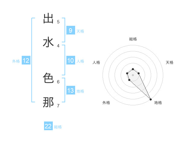 出水 色那さんの地格は13画の5点!