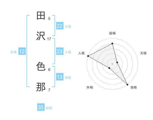 田沢 色那さんの人格は23画の5点!