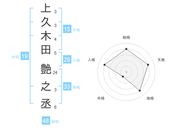 上久木田 艶之丞さんの地格は33画の4点!