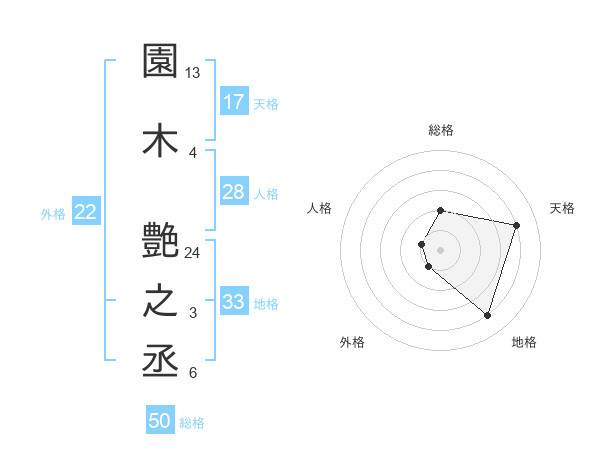園木 艶之丞さんを姓名の画数から五運を鑑定