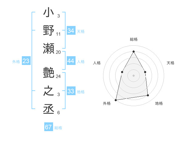 小野瀬 艶之丞さんを姓名の画数から五運を鑑定