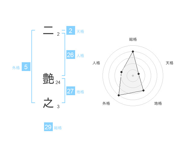 二 艶之さんの総格は29画の4点!
