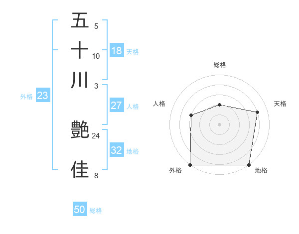 五十川 艶佳さんを姓名の画数から五運を鑑定