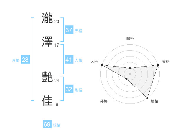 瀧澤 艶佳さんを姓名の画数から五運を鑑定