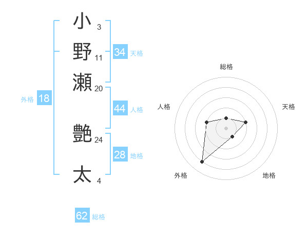 小野瀬 艶太さんを姓名の画数から五運を鑑定