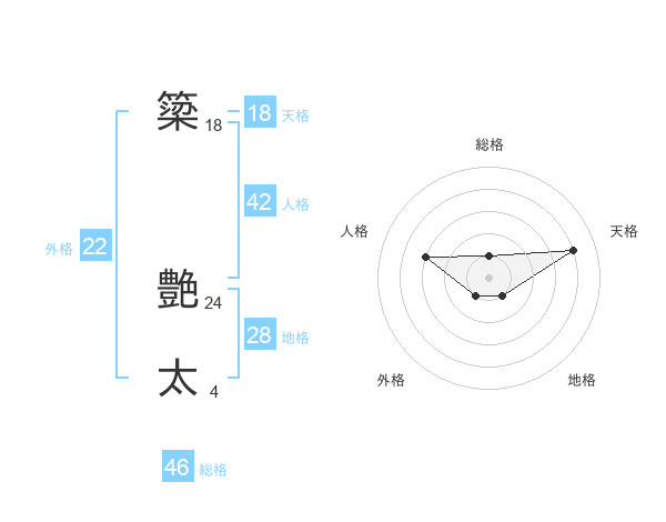 簗 艶太さんの総格は46画の1点!