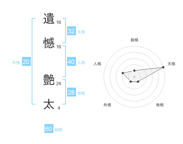 遺憾 艶太さんの総格は60画の1点!