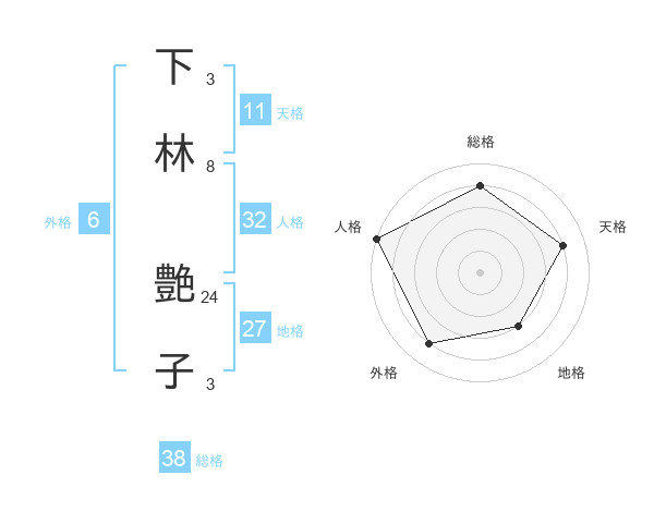 下林 艶子さんの総格は38画の4点!