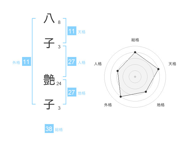 八子 艶子さんの総格は38画の4点!