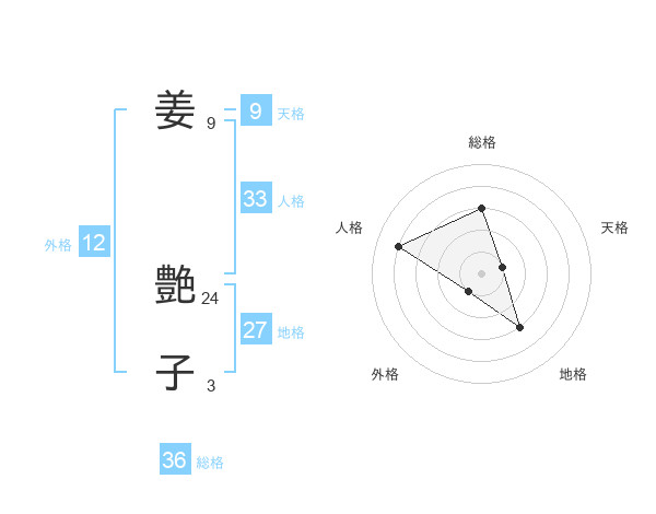 姜 艶子さんの総格は36画の3点!
