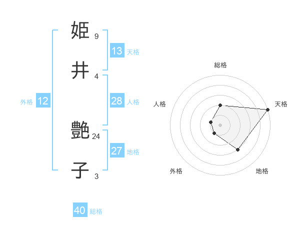 姫井 艶子さんを姓名の画数から五運を鑑定