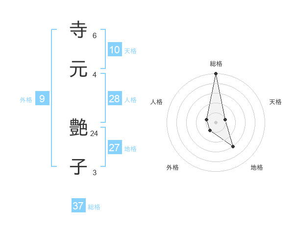 寺元 艶子さんの総格は37画の5点!