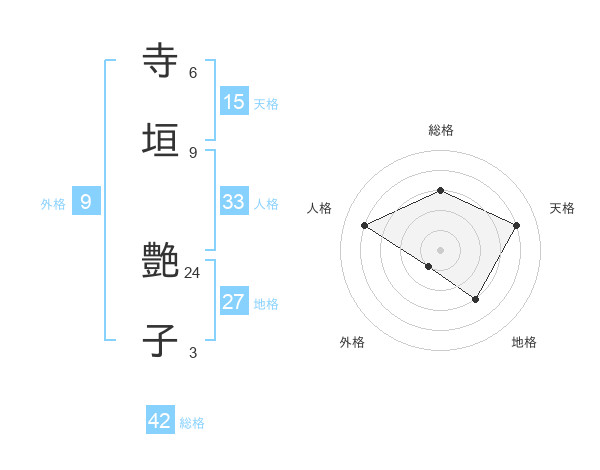 寺垣 艶子さんの総格は42画の3点!