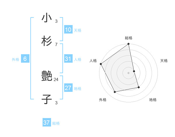 小杉 艶子さんの総格は37画の5点!