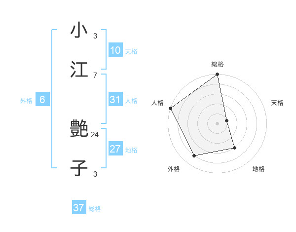 小江 艶子さんの総格は37画の5点!