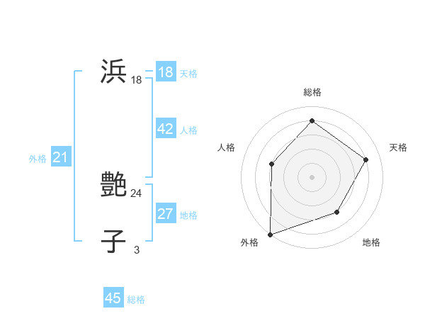 浜 艶子さんの総格は45画の4点!