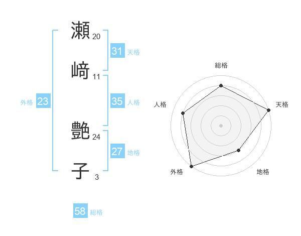 瀬﨑 艶子さんを姓名の画数から五運を鑑定