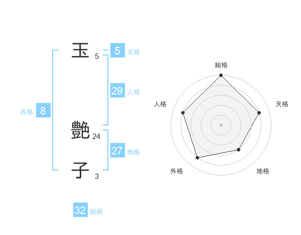 玉 艶子さんの天格は5画の4点!