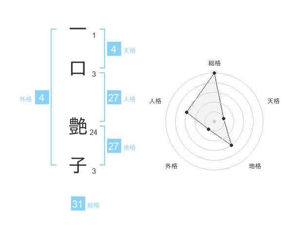 一口 艶子さんの天格は4画の1点!