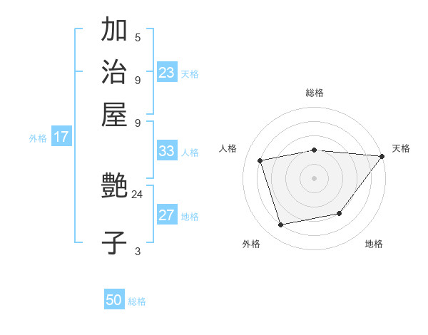 加治屋 艶子さんを姓名の画数から五運を鑑定