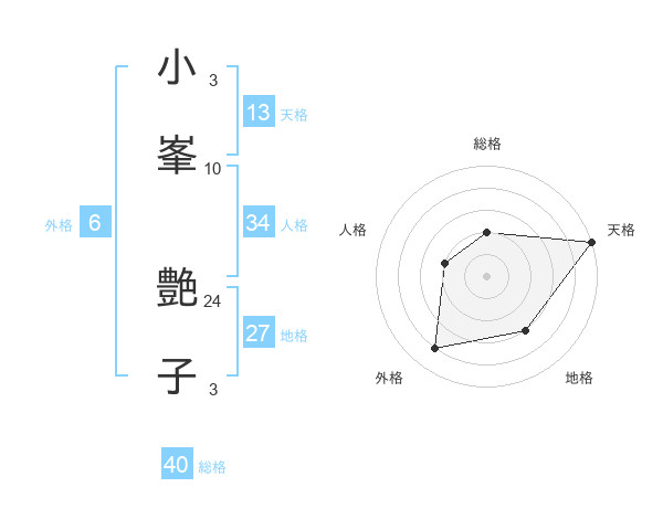 小峯 艶子さんの天格は13画の5点!