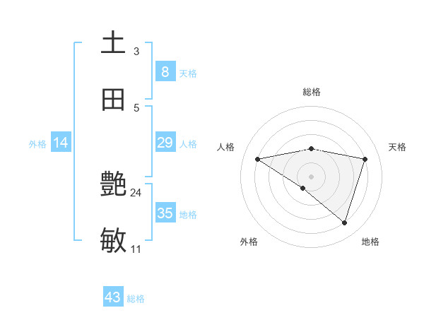 土田 艶敏さんを姓名の画数から五運を鑑定