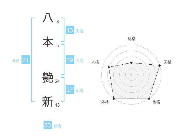 八本 艶新さんの天格は13画の5点!