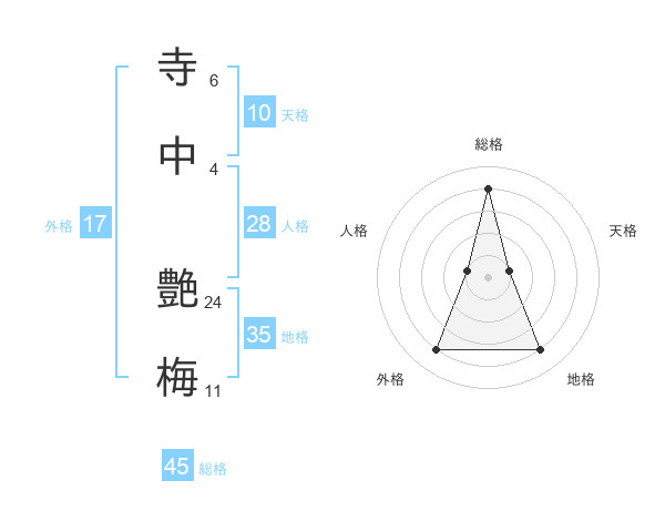 寺中 艶梅さんの総格は45画の4点!