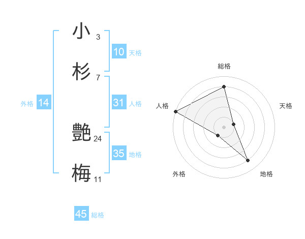 小杉 艶梅さんを姓名の画数から五運を鑑定