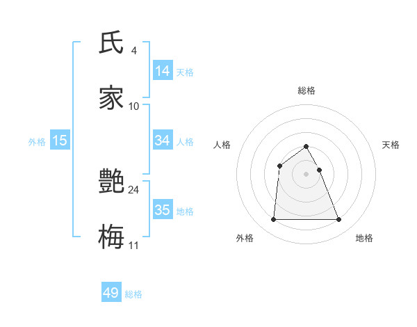氏家 艶梅さんを姓名の画数から五運を鑑定
