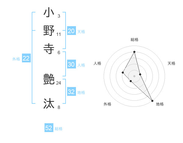 小野寺 艶汰さんを姓名の画数から五運を鑑定