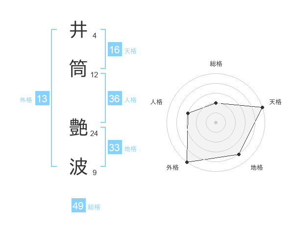 井筒 艶波さんを姓名の画数から五運を鑑定