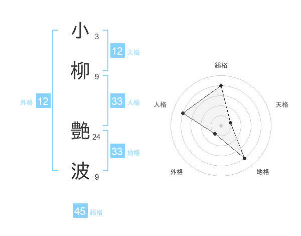 小柳 艶波さんの天格は12画の1点!