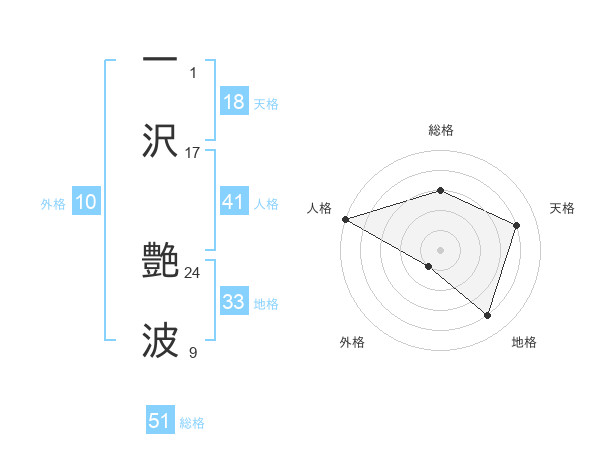 一沢 艶波さんを姓名の画数から五運を鑑定