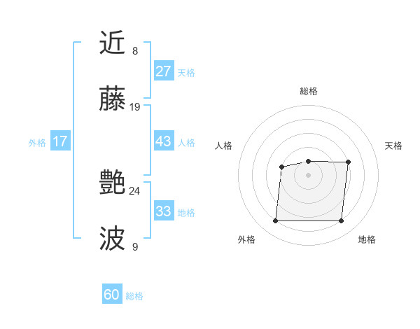 近藤 艶波さんを姓名の画数から五運を鑑定