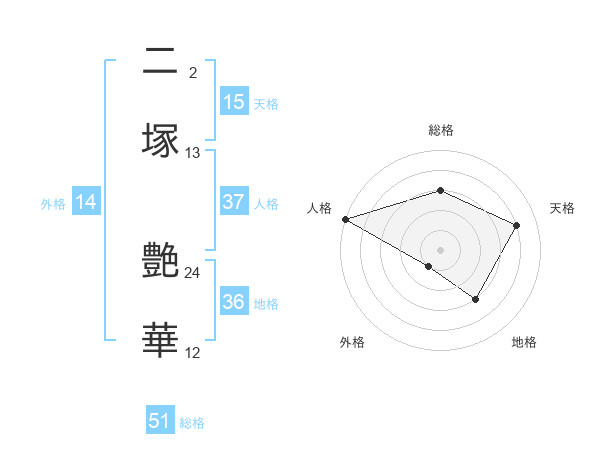 二塚 艶華さんの総格は51画の3点!