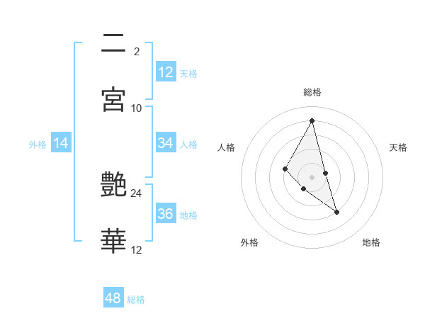 二宮 艶華さんを姓名の画数から五運を鑑定