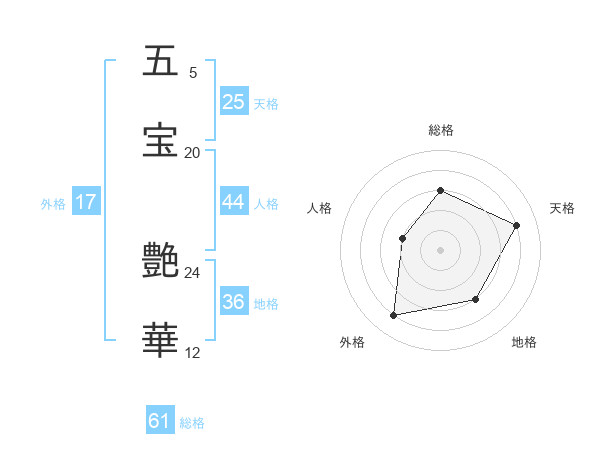 五宝 艶華さんを姓名の画数から五運を鑑定