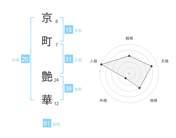 京町 艶華さんの総格は51画の3点!