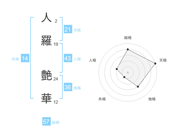 人羅 艶華さんを姓名の画数から五運を鑑定