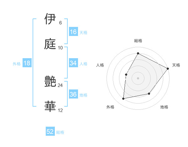 伊庭 艶華さんの天格は16画の5点!